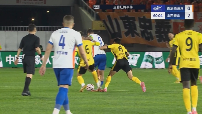 金年会体育中超第7轮,青岛西海岸VS山东泰山,比赛第60分钟,青岛西海岸56号队员脚部与山东泰山9号队员腿部有接触,裁判员判青岛西海岸56号犯规,无纪律处罚。VAR介入后,裁判员经在场回看,向青岛西海岸56号出示黄牌。